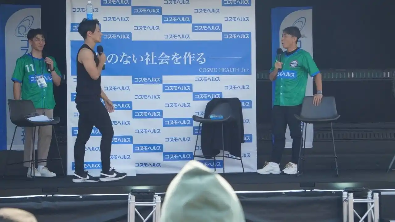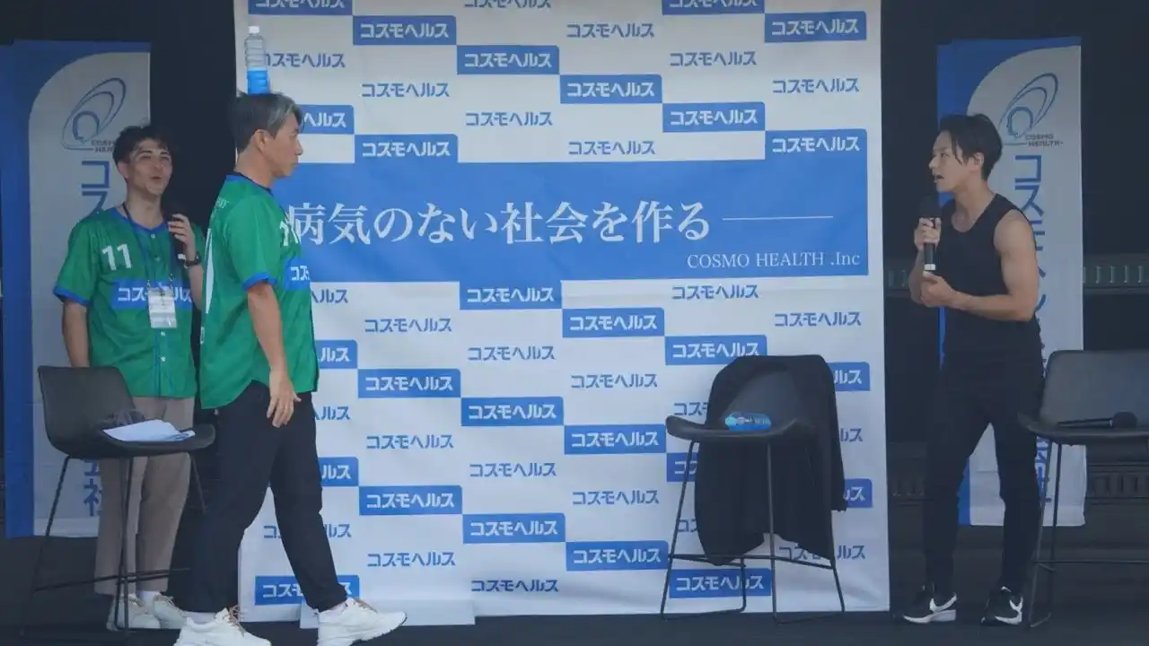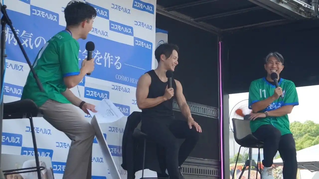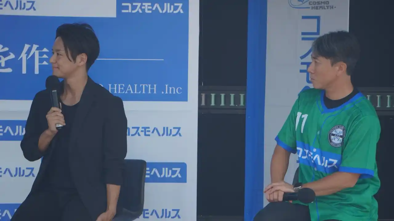 | 2025年7月6日(日)、三重交通G スポーツの杜 鈴鹿で開催された「三浦知良選手 プロ40周年特別記念試合」の一環として、コスモヘルス株式会社が提供する予防講演に、元サッカー日本代表の前園真聖さんが登壇しました。 | |||