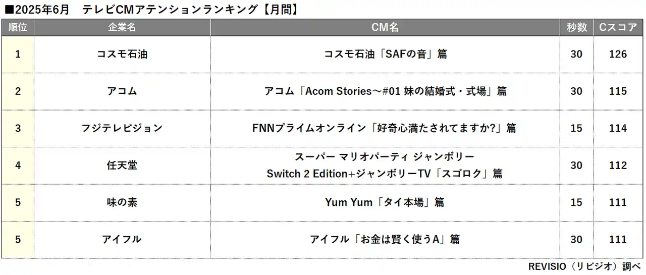 6月トップはコスモ石油「SAFの音」篇 |