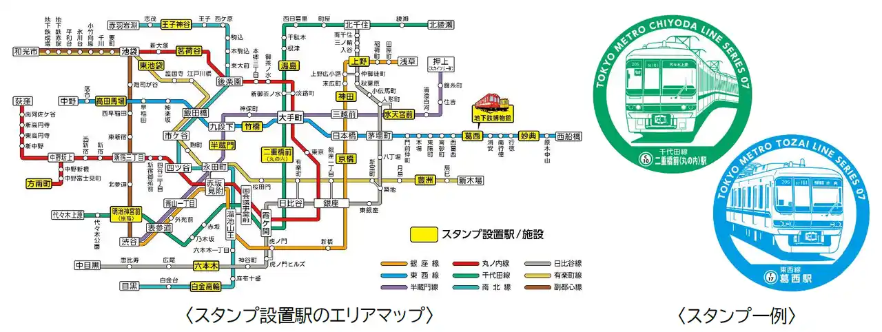 記念すべきスタートとして、まずは東京メトロ20駅および地下鉄博物館から開始いたします。今後、スタンプの種類や設置駅を順次拡大していく予定ですので、ぜひお楽しみください。 |