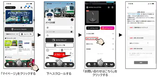 「エキタグ」アプリ内「マイページ」→「お問い合わせはこちら」より |