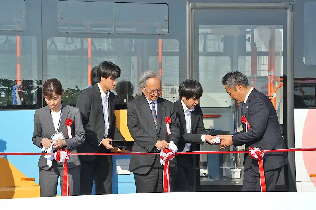EVバスを1台納車させていただき、2025年7月3日に納車セレモニー(主催:新潟医療福祉大学様)が執り行われました。 |