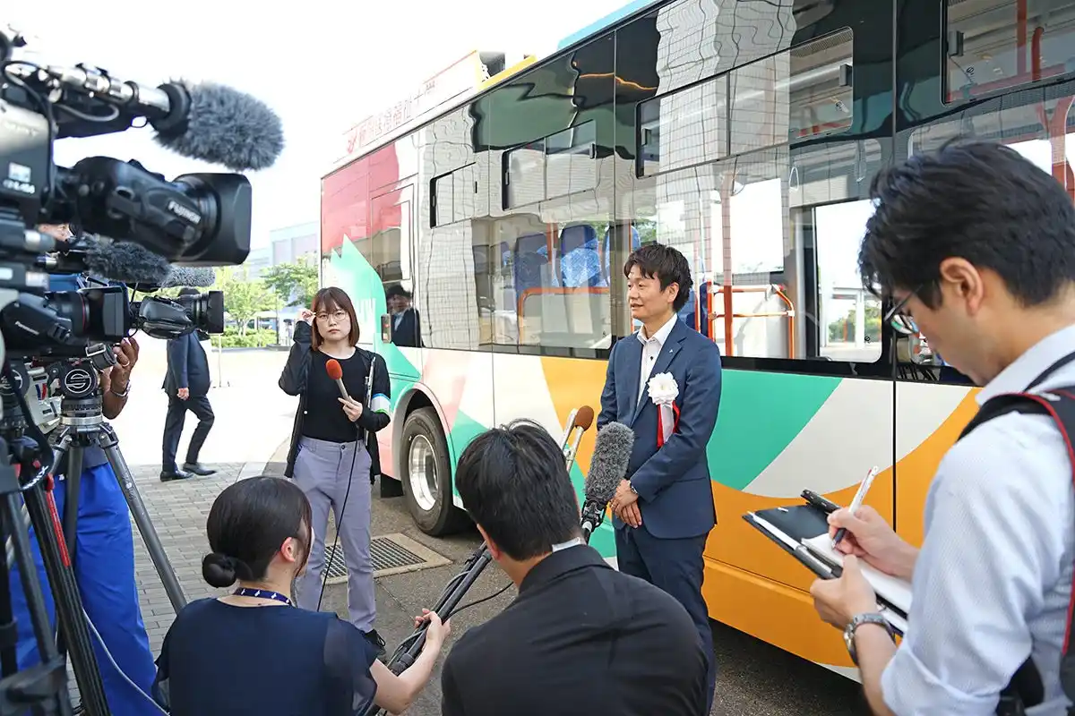 温室効果ガスの削減による環境面への配慮だけではなく、EVの特長であるアイドリング時の騒音の軽減、乗車時の快適性、災害発生時の移動電源車としての活用ができることが導入の決め手となりました。 |