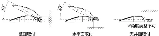 | 設置場所に合わせて30度までの角度調整が可能です。 | |||||||||