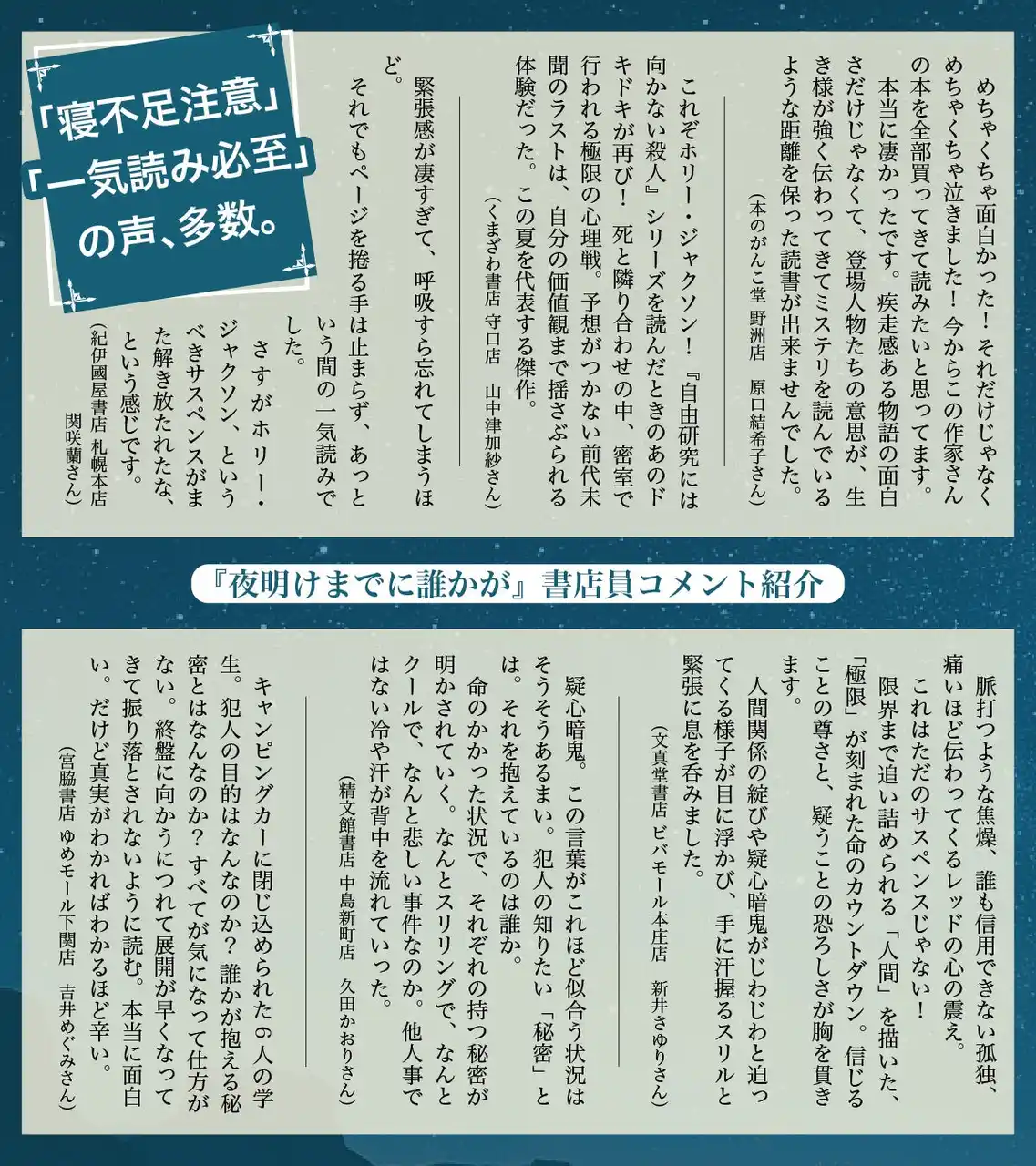発売に先んじてゲラやプルーフをお読みいただいた書店員さま・読者さまのコメントを一部ご紹介いたします! |