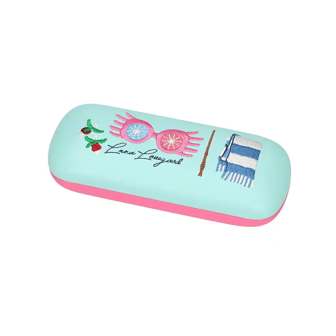 その他、ルーナをイメージしたミントブルーとピンクのバイカラーが目を引く、ルーナの持ち物のメラメラメガネや杖、レイブンクローのマフラーなどを刺繍したメガネケースを販売いたします。 |
