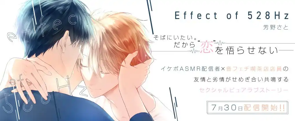 | コミックRougeよりBL新連載のご案内!イケボASMR配信者×音フェチ喫茶店店員の友情と劣情がせめぎ合い共鳴するセクシャルピュアラブストーリー『Effect of 528Hz』7月30日先行配信開始 |