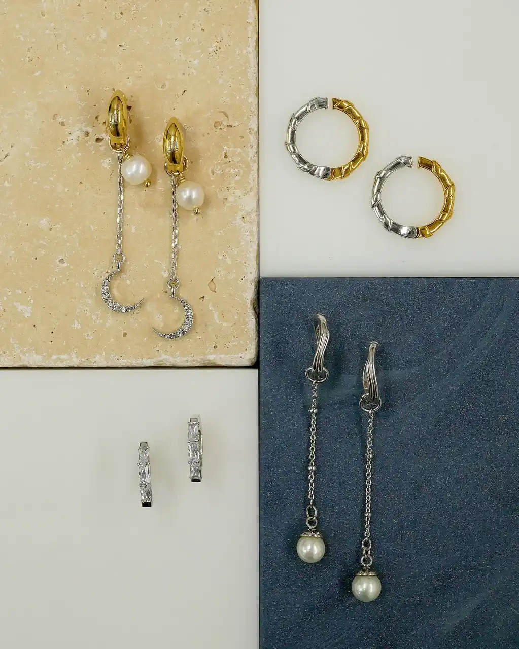 | 新作は、淡水パールやキュービックジルコニアをあしらった上品なデザイン。 | |||