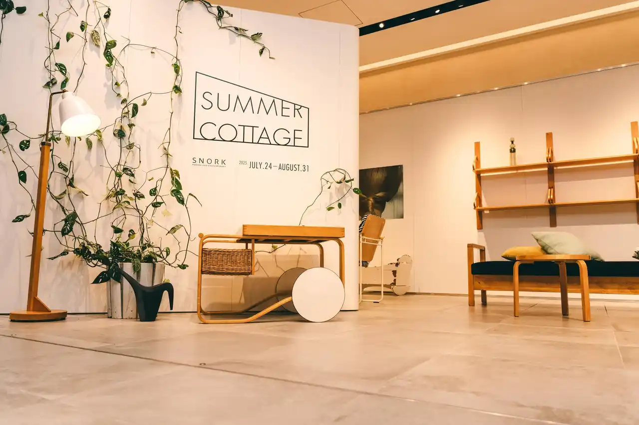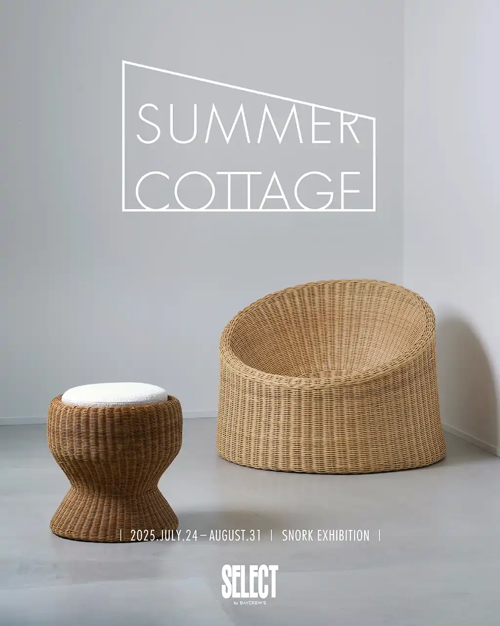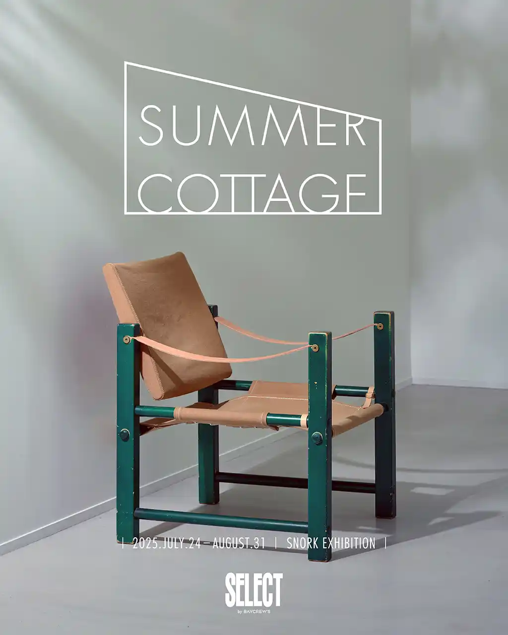 株式会社ベイクルーズ(本社: 東京都渋谷区、取締役CEO: 杉村 茂)が運営する「SELECT by BAYCREW’S」にて、フィンランドモダニズム期のヴィンテージファニチャーを中心に取り扱う山梨のデザインギャラリー〈SNORK - MODERN AND CONTEMPORARY〉のEXHIBITIONを開催中です。 テーマに据えられたのは「SUMMER COTTAGE」。 1970~80年代にフィンランドで生まれた名作家具を中心に、〈SNORK〉の真骨頂であるモダンデザインの希少なアーカイブなど、数十点の家具やプロダクトを展示販売しております。 |