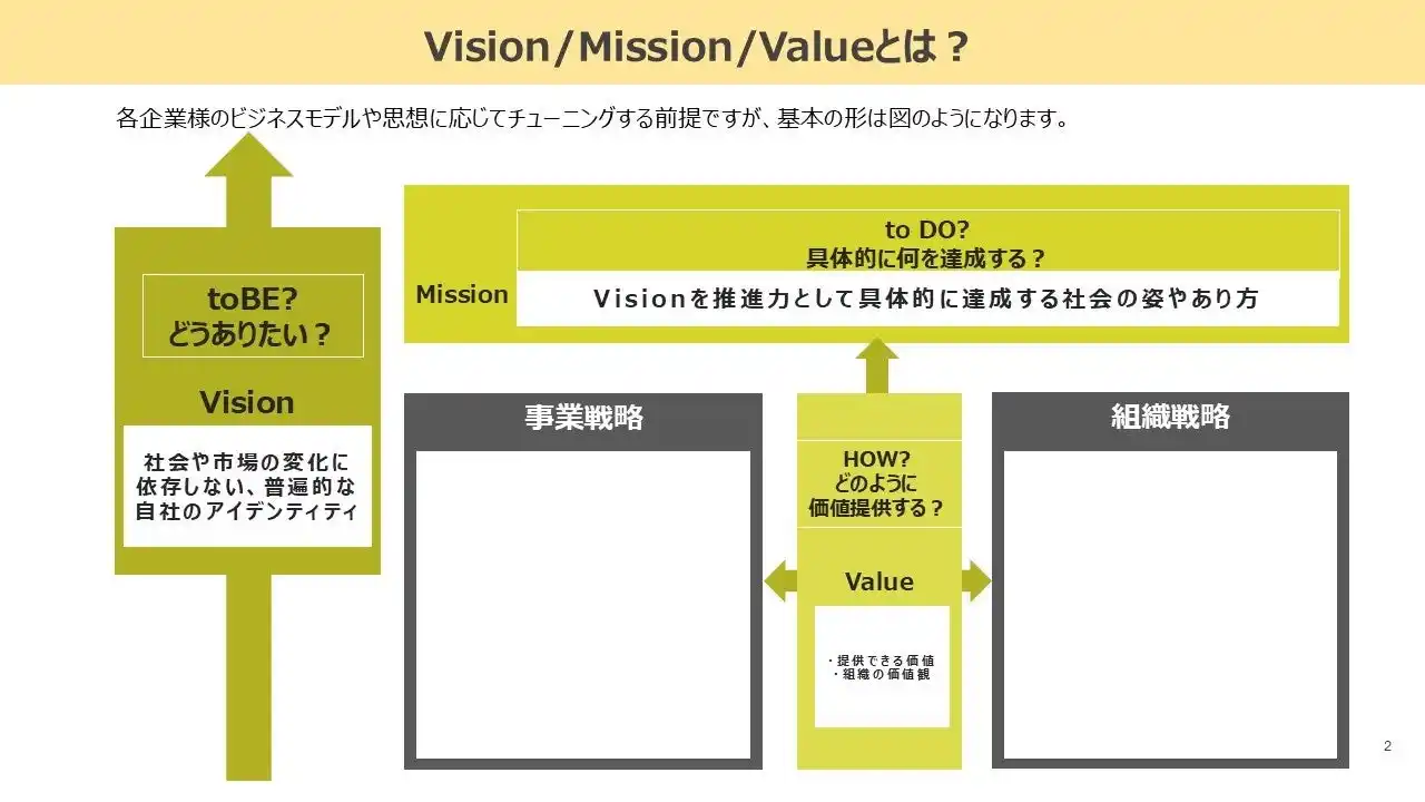 事業拡大に伴う組織変容の中で、共通言語としてのVision/Mission/Valueの策定を希望されておりました。各意思決定、目標管理やマネージャー登用、お客様へのアイデンティティの伝達含めて深く言語化し、組織発展の軸にしていきたいとの依頼をいただきました。 |