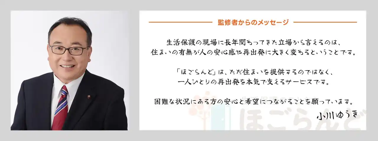 当社では、本サービスを通じて生活困窮者の方々が安定した生活を取り戻し、経済的自立に向けた第一歩を踏み出せるよう支援してまいります。 |