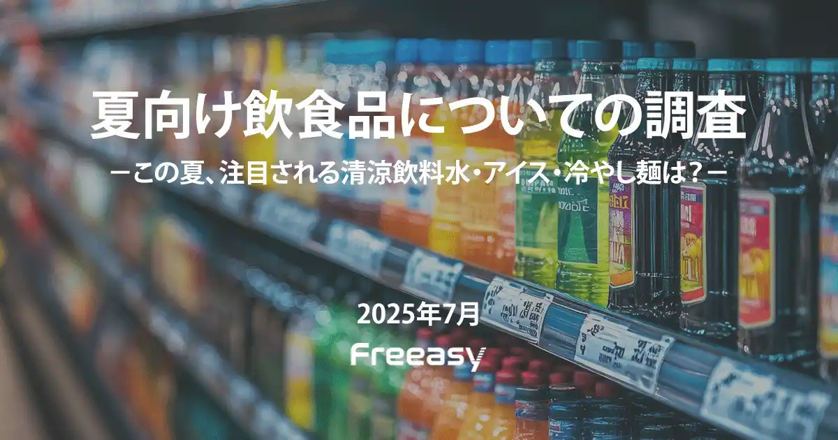 アイブリッジ株式会社が展開するセルフ型アンケートツール“Freeasy(フリージー)”では、約1,300万人のモニター会員を活用し、2025年7月3日、15歳以上の男女を対象に、「夏向け飲食品についての調査-この夏、注目される清涼飲料水・アイス・冷やし麺は?-」を実施いたしました。 |