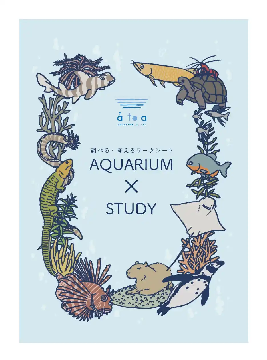 中・高校生向けの学習教材として調べる・考えるワークシート『AQUARIUM×STUDY(アクアリウム バイ スタディ)』を2023年の7月に制作しました。本冊子は、アトアの館内を巡って解答を探すだけでなく、野生動物を取り巻く「絶滅危惧」や「環境問題」などを可愛いイラストとコラムで紹介しています。 |