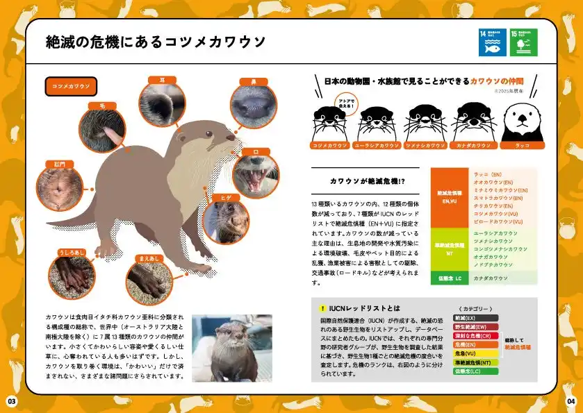 今回は、校外学習や修学旅行などでお越しいただいた方々のSDGsについて水族館で学びたいというご要望を受け、生きものや地球環境への興味・関心につなげることを目的に、本冊子の制作に至りました。 |