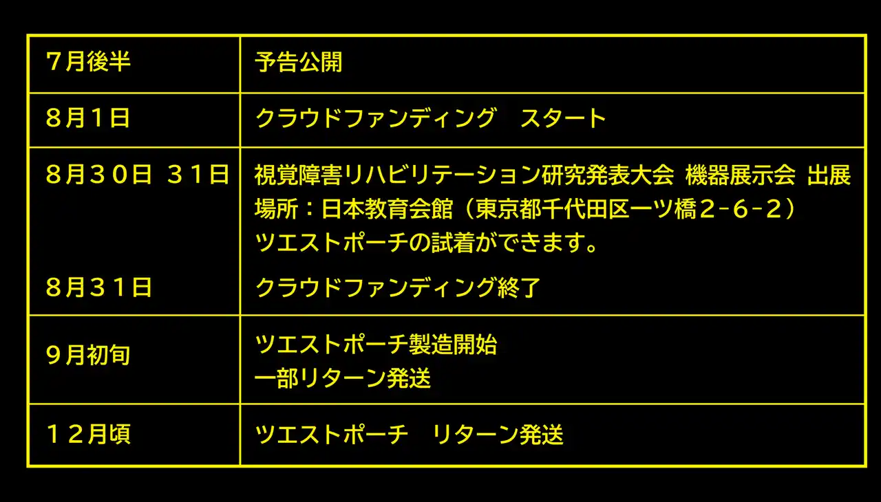●山形県視覚障がい者情報センターで「ツエストポーチ」を試着できます! クラウドファンディング期間中(8/1~8/31)および終了後も試着が可能です。お近くにお住まいの方は、ぜひ実際に手に取ってお試しください。※貸し出しは行っておらず、その場での試着となります。スタッフまでお声がけください。 |