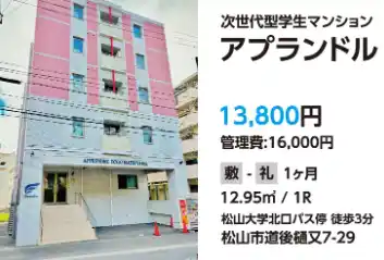 | 愛媛大学周辺の学生向け賃貸物件を中心に、敷金礼金なしや家具付き・初期費用が安い物件など、お得で安心して暮らせる部屋探しをサポートします。 | |||||||||