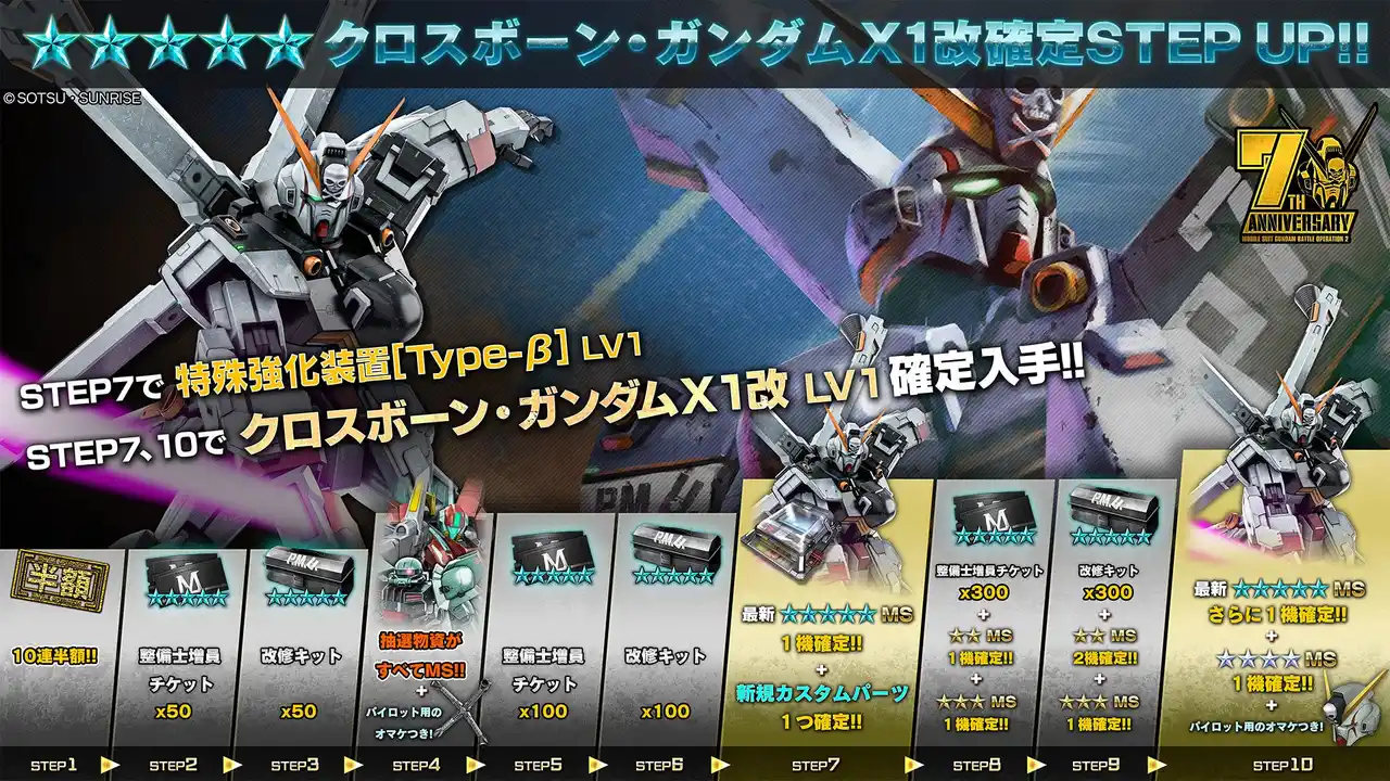 7周年を記念した「7周年大感謝祭」を開催し、「クロスボーン・ガンダムX1改」が参戦したことを |