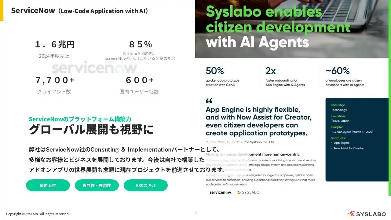 事業内容:業務システム開発、クラウドインフラ支援、ServiceNow導入支援、システム運用保守など |