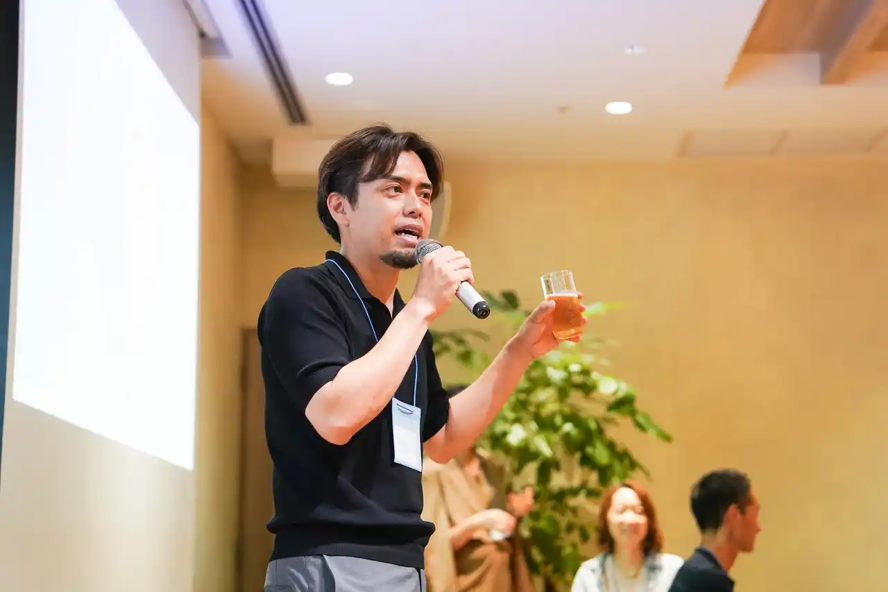 mento代表 木村より乾杯の挨拶をしたあと、mento5年間の歩みを振り返りました。懇親会をはさみつつ、今後のmentoのコーチ×AIで管理職を支援する「マネジメントサクセスプラットフォーム」の構想をお話しました。 |