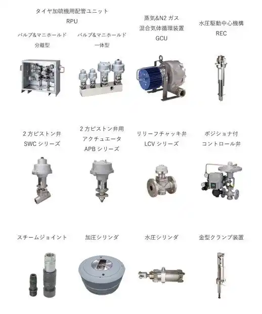 | タイヤ加硫機やタイヤ成型機の主要機器 | |||