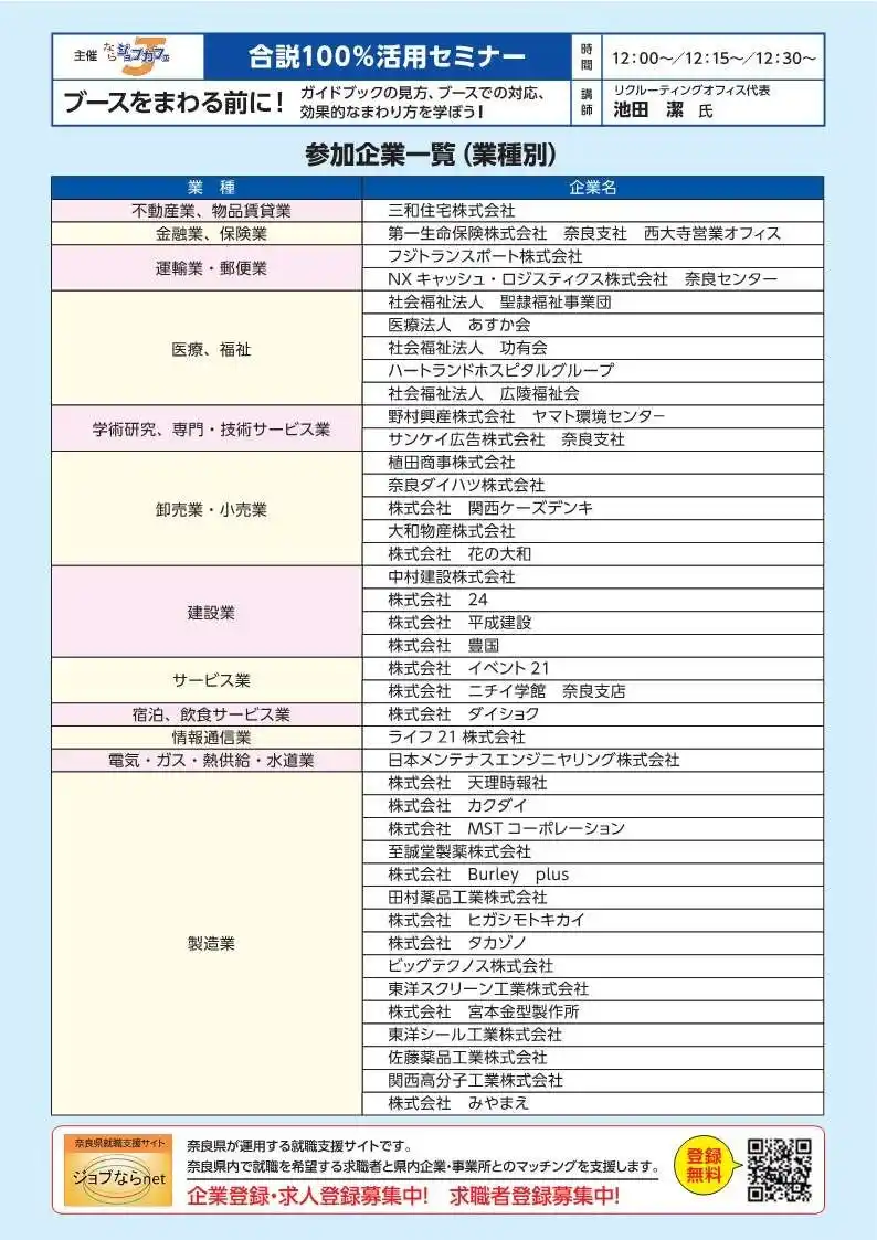【奈良県】 奈良労働局×奈良県 合同企業説明会 開催