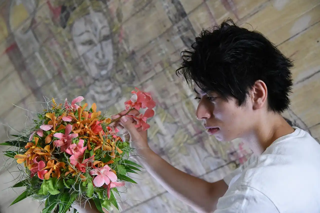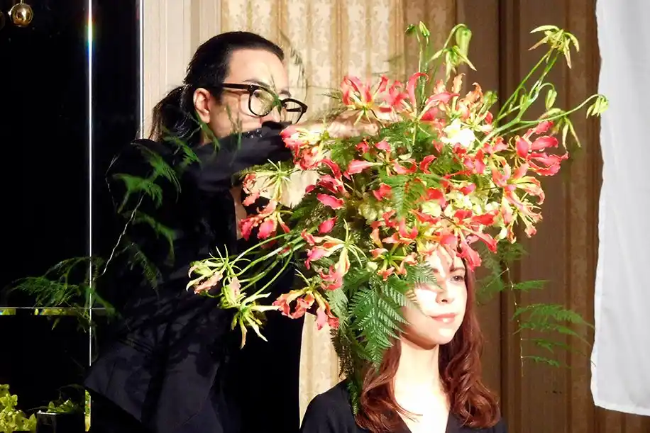 HANANINGEN フローリスト フォトグラファー ATSUSHI ANZAIさんとフラワーデザイナーとして活躍中の佐藤俊輔さんによる華やかなアレンジメントパフォーマンスを披露! |