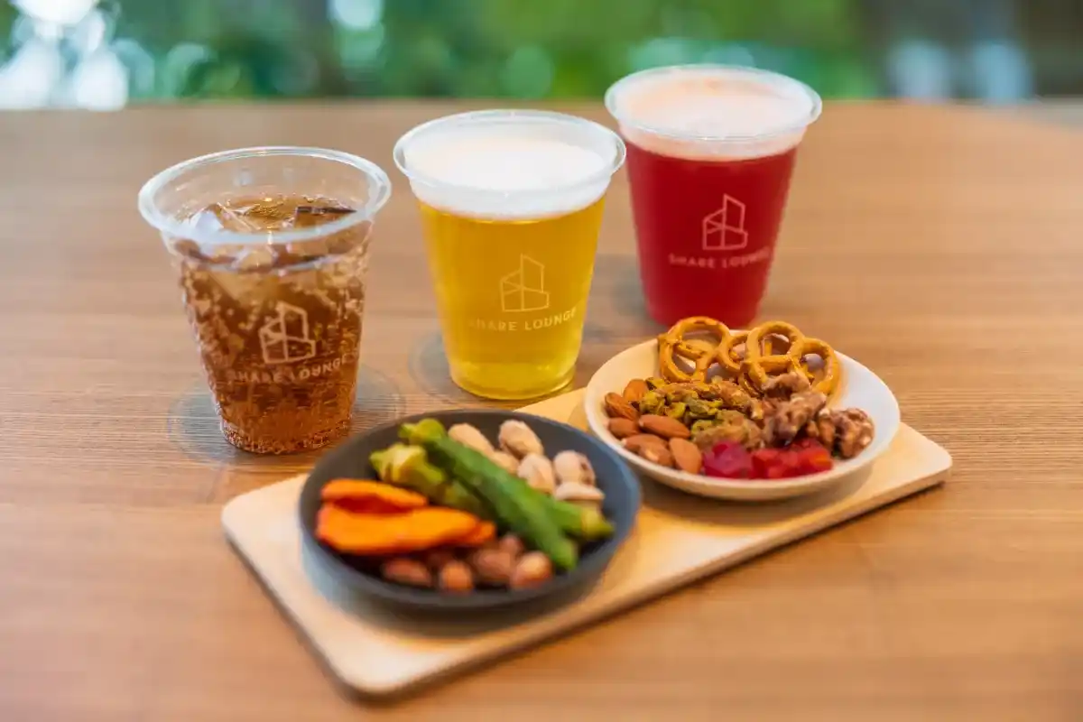 「SHARE LOUNGE」の一部店舗では、アルコール類もおかわり自由の「アルコールプラン」をご用意しています。対象店舗でアルコールプランが10%OFFになるキャンペーンを開催中です。仕事終わりの一杯に、休日の昼飲みに、飲み足りない時の二次会に、お気軽にご利用ください。 |