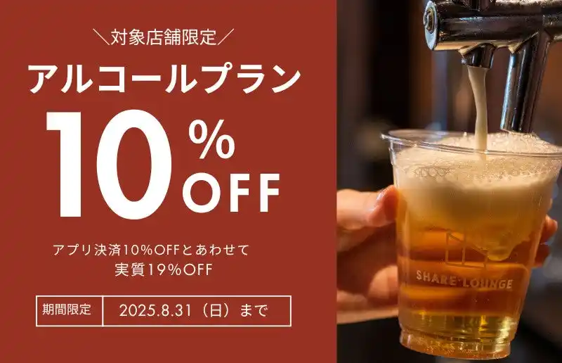 ・対象店舗:HP( https://www.sharelounge.jp/news/campaign-alcohol2508 )をご確認ください。 |