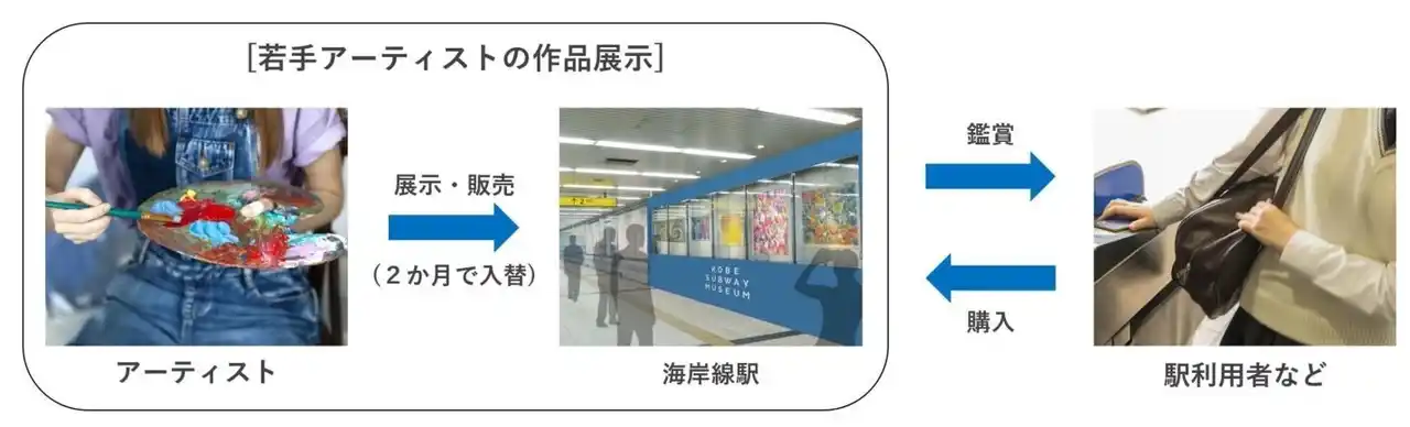 海岸線全駅を“ミュージアム”に見立て、市内ギャラリー等とも連携し、若手アーティストの作品を展示・購入できる仕組みを導入することで、神戸の次世代を担う若手アーティストの支援につなげます。