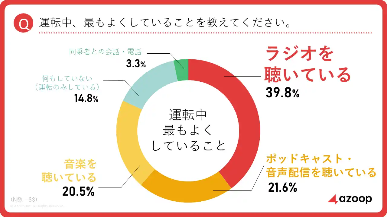 Topic1.:運転中の過ごし方は音声コンテンツの利用が8割超、「ラジオ」がトップの約4割 |