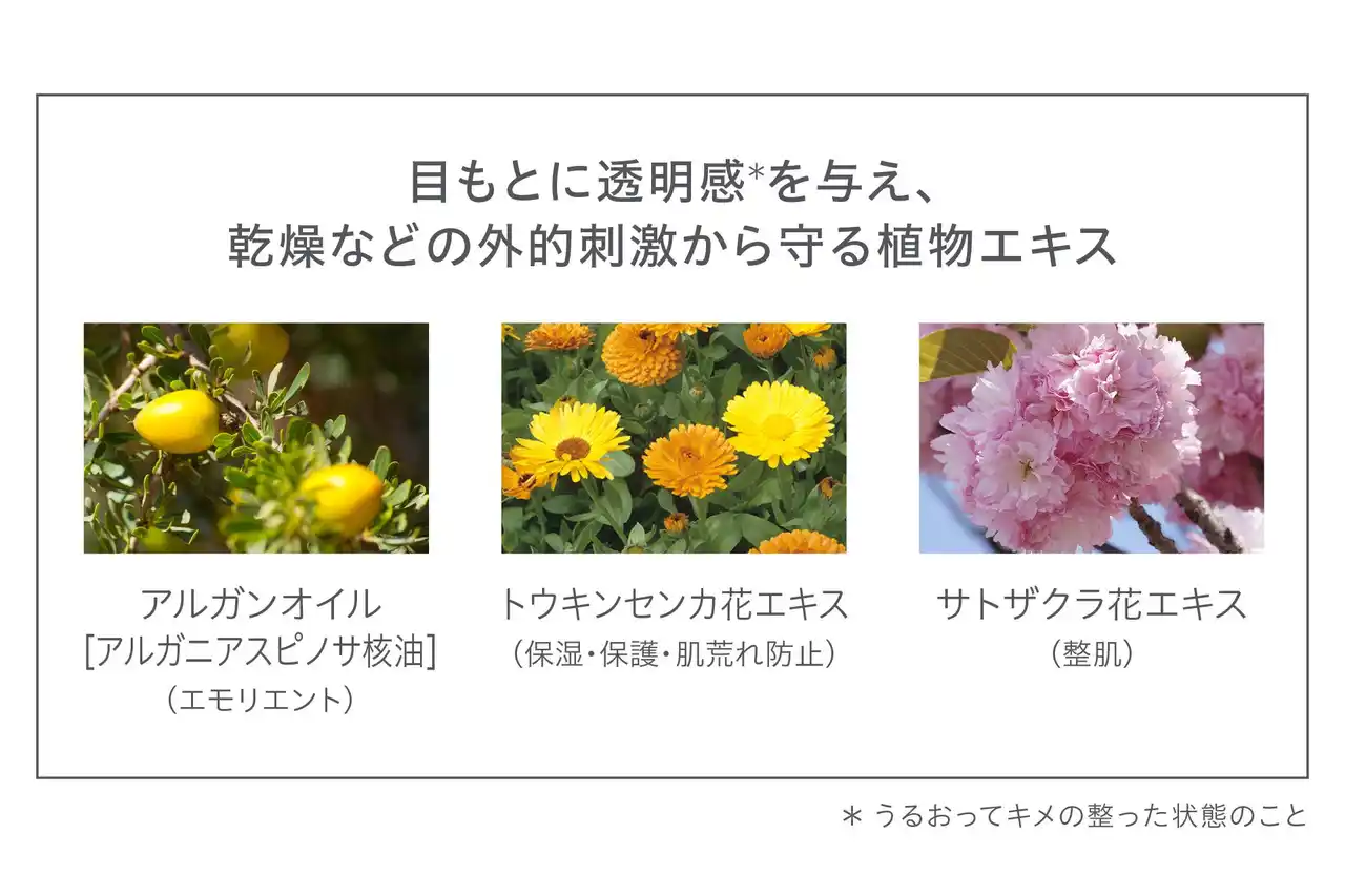 | *1 メイクアップ効果 *2 お手入れのこと *3 レチノール様作用(ハリ・整肌)のある植物成分 *4 保水・保湿 | |||||||||||