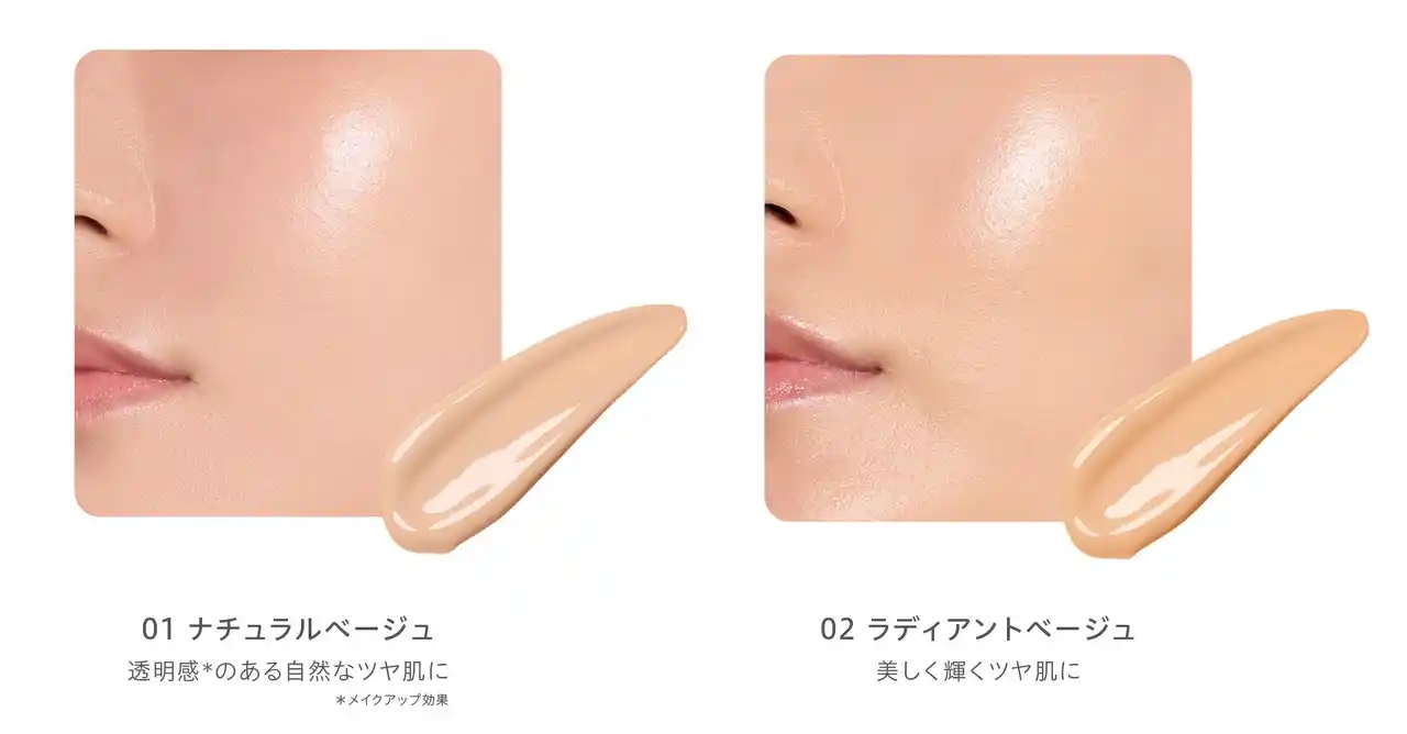 | 巧みに光を操ることで、毛穴、凹凸、色ムラなどの肌悩みを自然にカバーしながら透明感*¹ のある仕上がり。まるでスキンケアのように素肌に溶け込み、内側から明るくつやめく“上質な素肌”のような印象へと導きます。 | |||||||||||