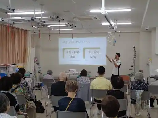 6月のセミナーでは当院のリハビリテーション部統括長で認定理学療法士の金子智哉氏が「運動を通じた健康づくり」についてお話ししたり、乙訓地域のリハビリテーション専門職で考案した「乙訓たけのこほりほり体操」の紹介・実践し、参加者の皆様と体を動かしたり、簡単な体力測定や管理栄養士による栄養相談会も実施し、皆様の健康づくりのお手伝いをさせていただき、21名の方にご参加いただきました。 |