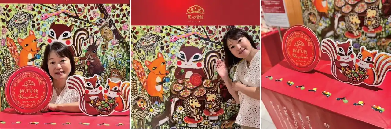1. 日本橋本店店内に設置した「ちさリス×榮太樓飴フォトスポット」で、可愛い動物達と一緒に撮影 |