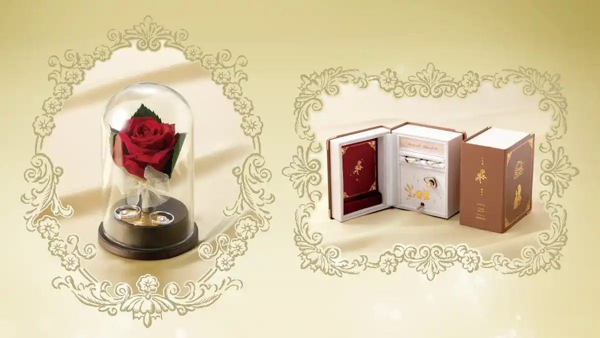 本作で9th seasonとなる、「真実の愛」をテーマにした不朽の名作、ディズニー・アニメーション映画『美女と野獣』の世界観を各所に施したブライダルコレクションは、エレガントで洗練されたデザインと歳を重ねても美しく身に着けられるボリューム感が人気のコレクションです。 |