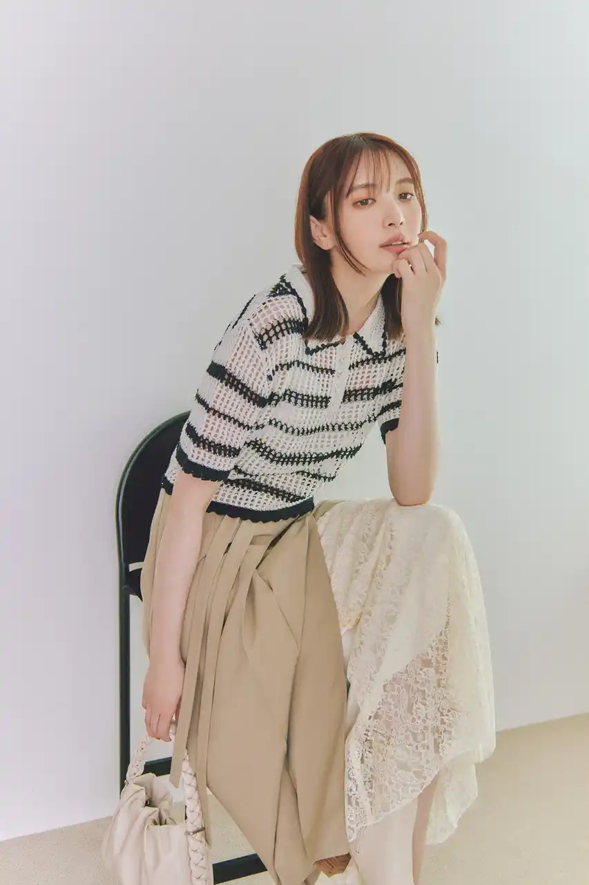 KNIT SHIRT ¥8,800/ INNER ¥5,500/ SKIRT ¥12,100 |