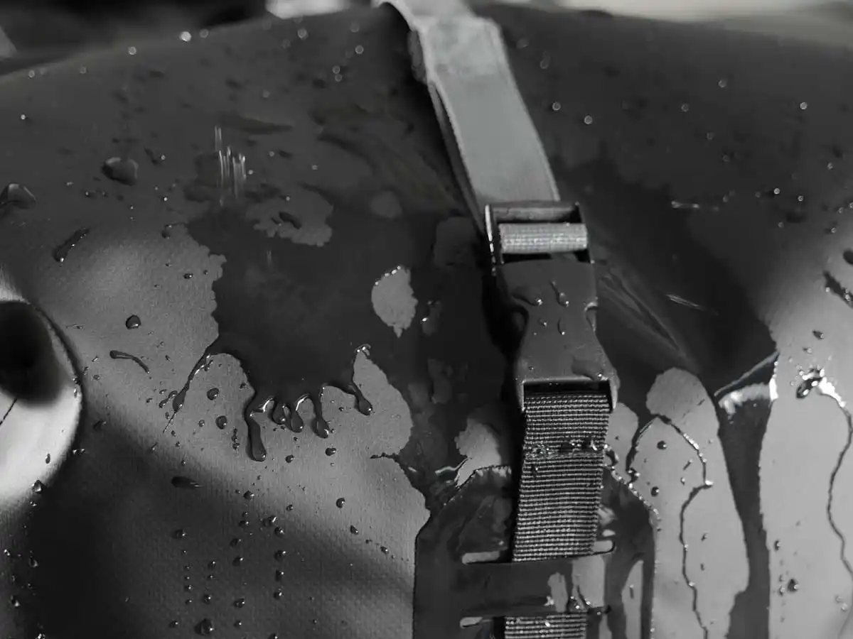 雨や泥水、走行時の飛沫などから荷物を保護。レインカバー不要で普段使いにも安心 |