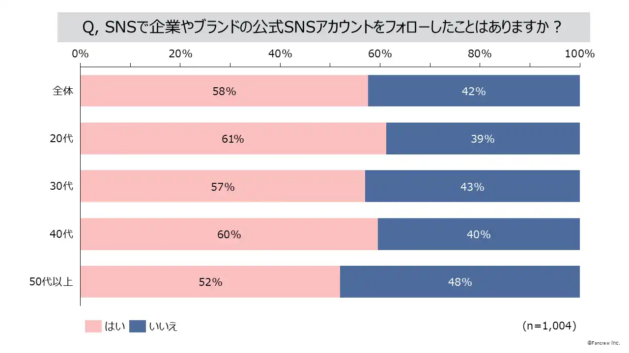 SNSで企業やブランドの公式SNSアカウントをフォローしたことがある58% |