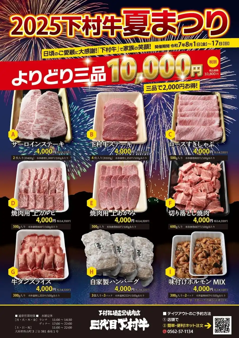 2025下村牛夏まつり「よりどり三品10,000円」 |