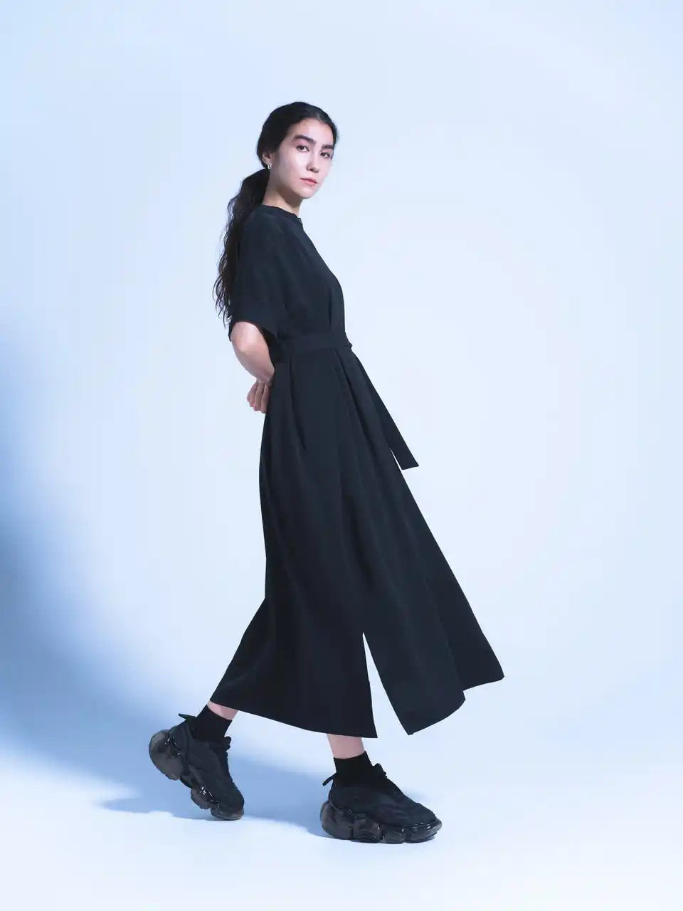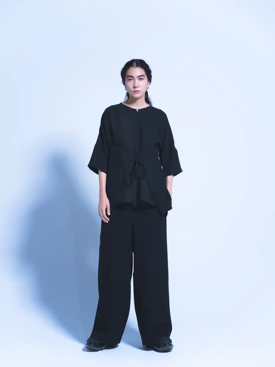 1枚の布から無駄な布が出ないように裁断し、それらを折り紙のように仕立てているため、通常製法と比較し生地のロスを約10%削減。サステナブルであり、「折る」「重ねる」「包む」といった、日本の伝統的な発想を取り入れることで、機能性と造形美を兼ね備えています。 |