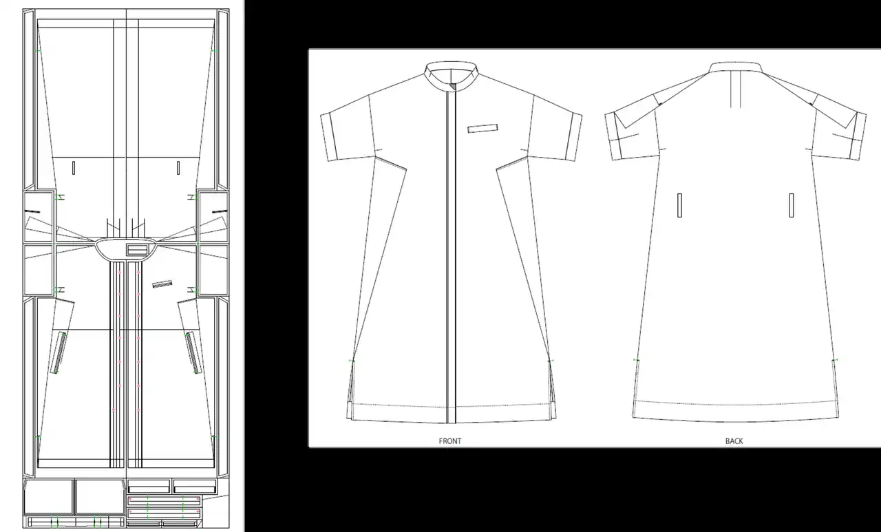 1枚の布から折り紙のように仕立てたパターン展開図イメージ |
