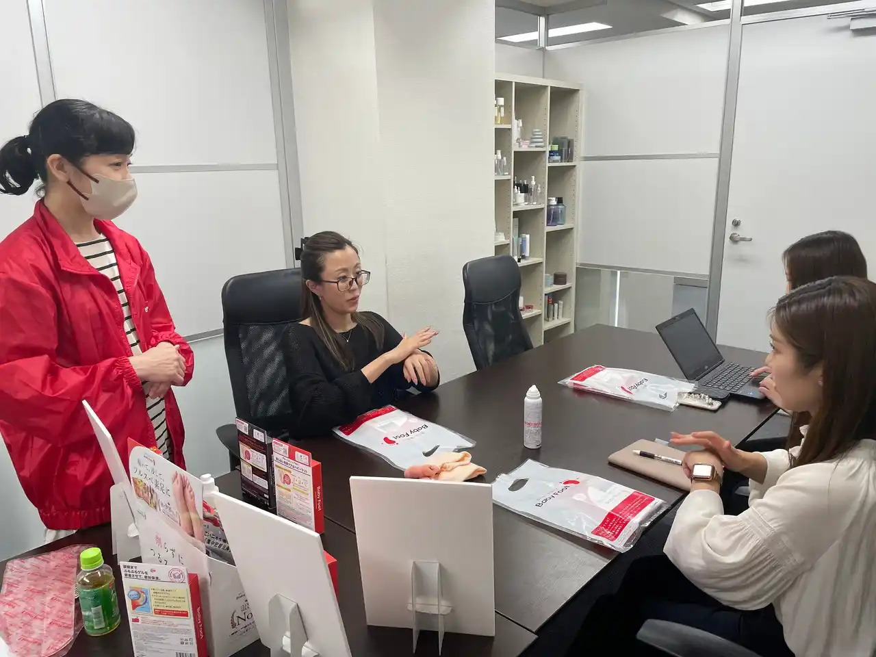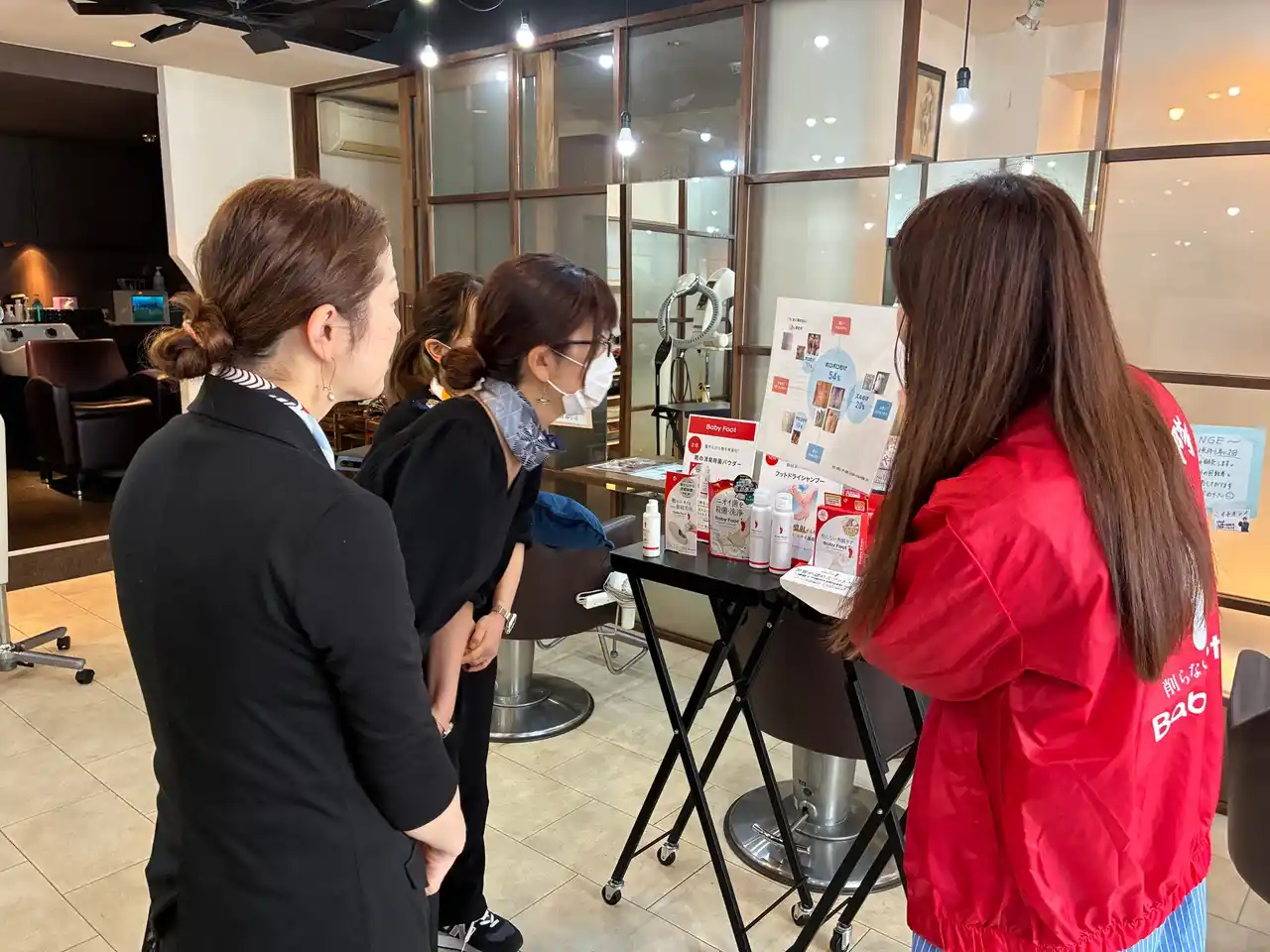 活動第一弾として、5月から企業サンプリングを実施。フットケアの啓蒙活動の一環として、足への負担が大きい医療現場や美容業界など、長時間の立ち仕事に従事する方々を対象に、日々のセルフケアの重要性を呼びかけました。中には、長時間の靴の着用による足のニオイに悩む声も多く、ニオイケアに特化したアイテムを実際にお試しいただきながら、悩みに合わせたセルフケアの方法を紹介。自身の足元と向き合うきっかけとなり、多くの方にセルフケアの必要性を感じていただけました。普段からフットケアを意識している方から商品を初めて知る方まで、幅広い反応があり、「実はフットケアしなきゃと思っていました」といった声も多く寄せられました。 |