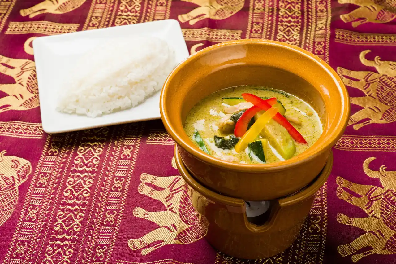 | ココナッツミルクのコクとハーブの鮮烈な香りが特徴の<タイ風グリーンカレー> | ||||||||||||||