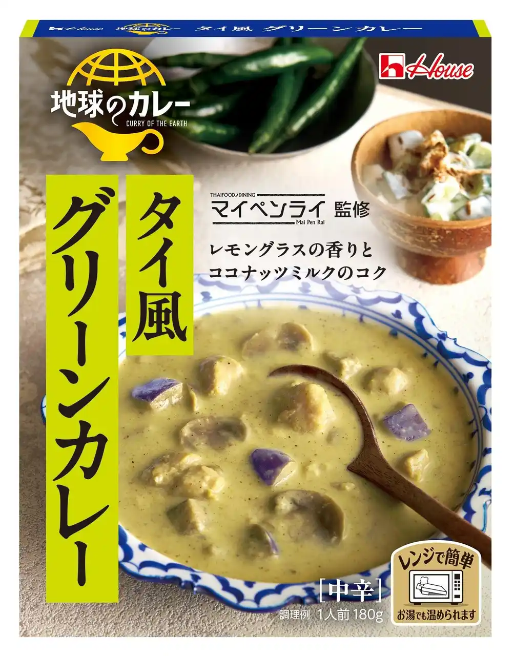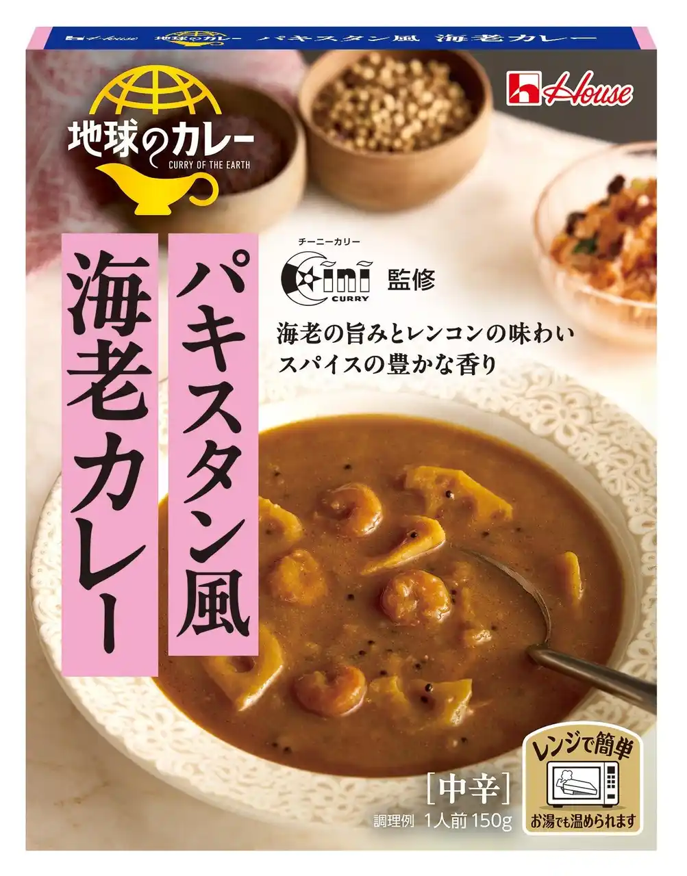 | ハウス食品株式会社は、レトルトカレーの新シリーズ「地球のカレー」より、<タイ風グリーンカレー><パキスタン風海老カレー><北インド風バターチキンカレー><ゴア風ポークビンダルー><パキスタン風チキンカリー>の全5種類を、2025年8月11日(月)からスーパーなどで発売します。 | ||||||||||||||