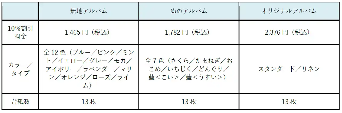 写真プリントの収納にぴったりな「写真アルバム」と、ましかく・オリジナル・L判の3種類に対応したシンプルなデザインのフォトフレームが10%割引になります。また、大人気のぬのアルバムに新カラーも登場します。 |