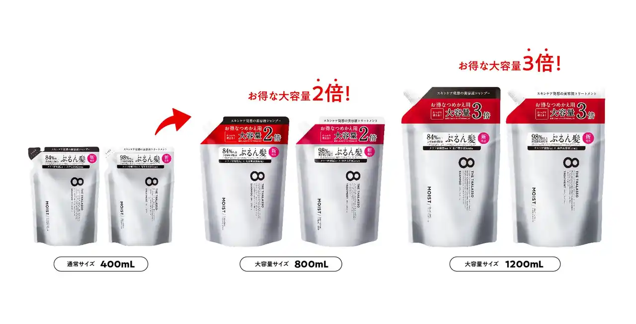 | リニューアルを記念し、通常の2倍・3倍の詰め替え大容量サイズが登場! | ||||||||||