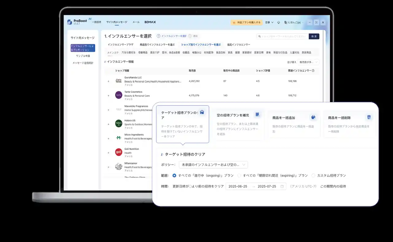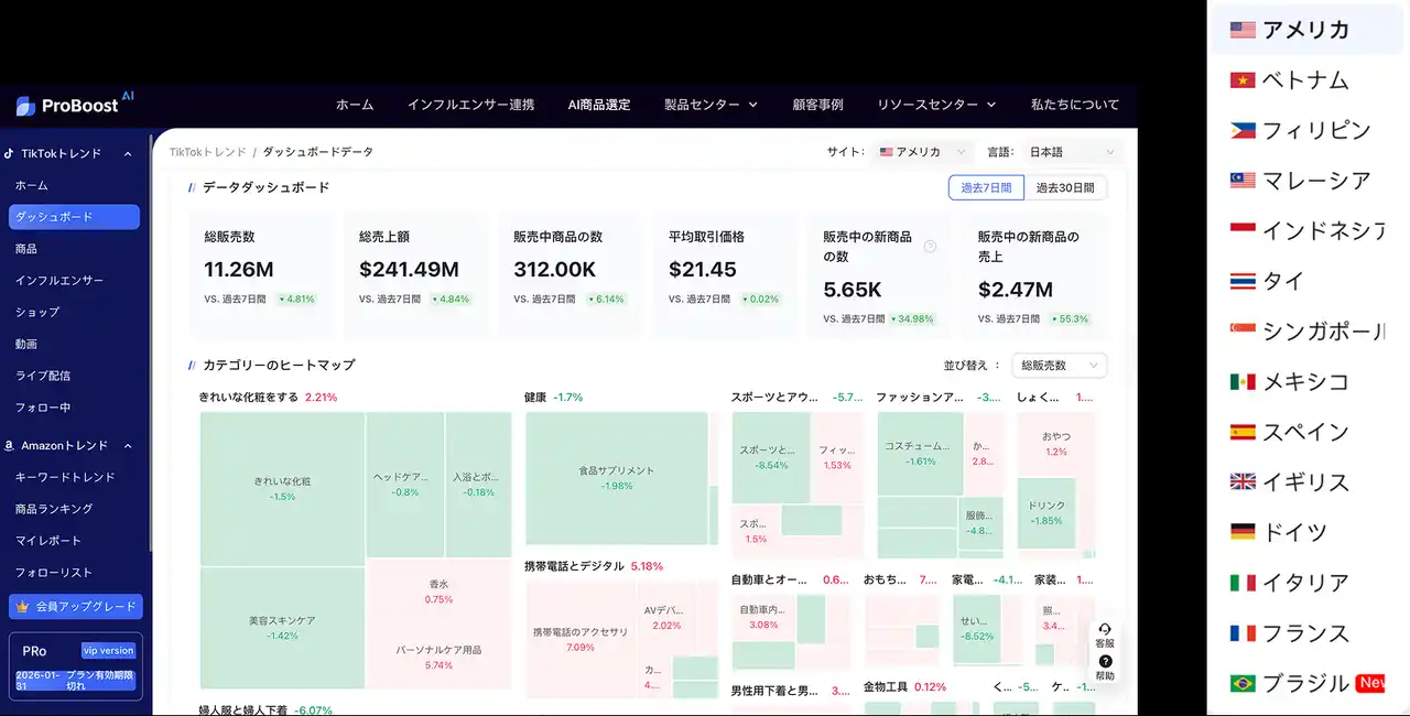 TikTokやAmazonなどのグローバルデータを活用し、商品選定からインフルエンサー連携までを一気通貫で支援する本サービスは、https://proboost.jp/ にてベータ版をお試しいただけます。 |