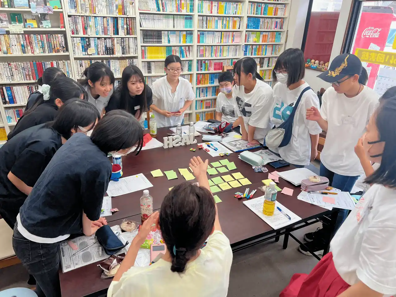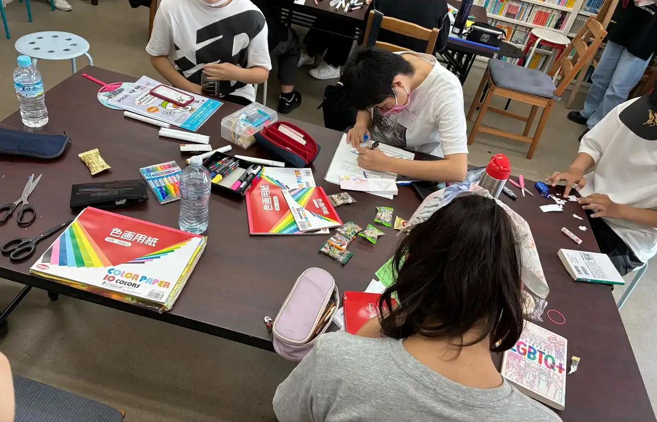 7月20日のキックオフミーティングで、今年のブックオフのタイトルやテーマを考えました。LGBTQの基礎知識も学びつつ、皆でブックフェアを企画していく大事なプロセスです。中学2年生から高校3年生までのメンバーでテーマ決めを行いました。テーマに入れたい単語や文のアイデアがたくさん出てきたり、意表を突くような面白いワードが見られたりしました。何回かに分けて多数決を取り、全員で納得のいくテーマとして、「モノクロ~世界を彩るカラフルの魔法~」になりました。 |
