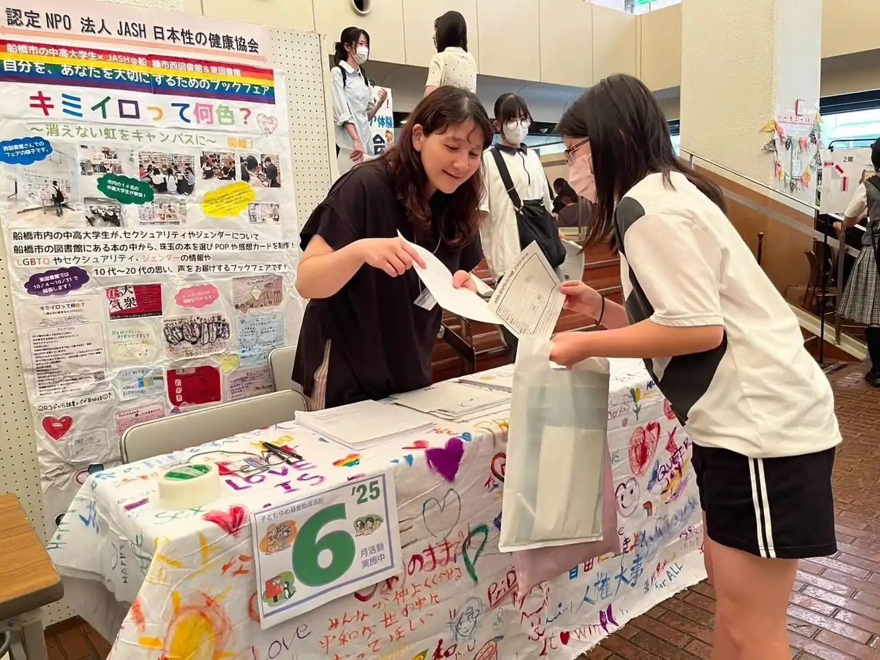 ブックフェアは学生の思いや思考を社会に届け、概念のアップデートをする大きな機会であり、彼らにとってもまた性について考え表現する経験でもあります。この試みはパートナーシップ宣誓制度が制定され、LGBTQ啓発の市民講座を毎年開催するなどダイバーシティ推進に力を入れる船橋市ならではの取り組みであり、JASHの働きかけにより船橋市市民協働課、船橋市公立図書館の協力のもと3回目の開催となりました。今年も千葉県船橋市市民協働課主催の地域に飛び出せ!ふなばし夏のボランティア体験で集まった学生ボランティア10名とJASHのユースメンバーで、ブックフェアを手作りしました。 |