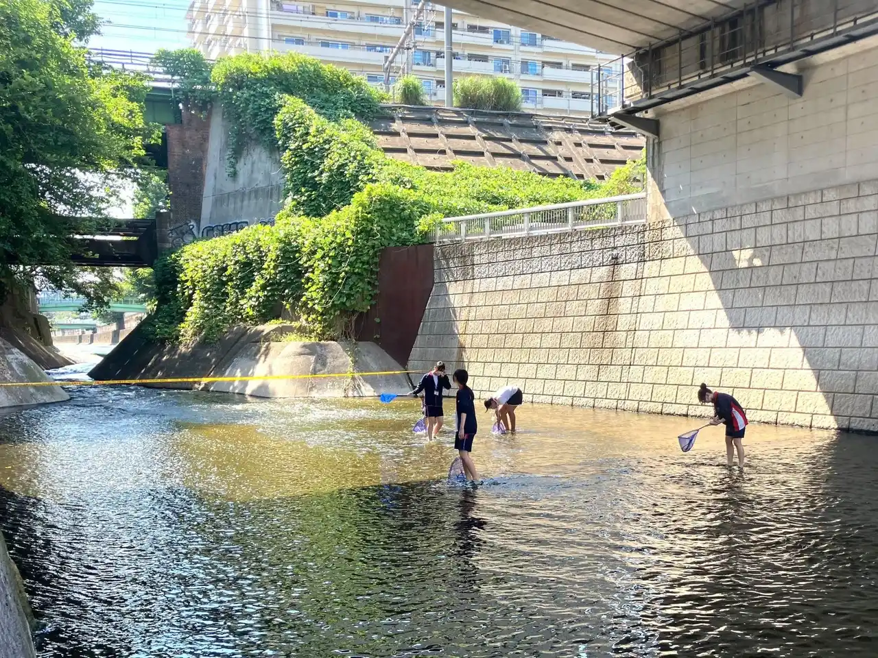※7月23日、成女高校生物部が神田川親水テラス(高田馬場)で生態系を調査 |