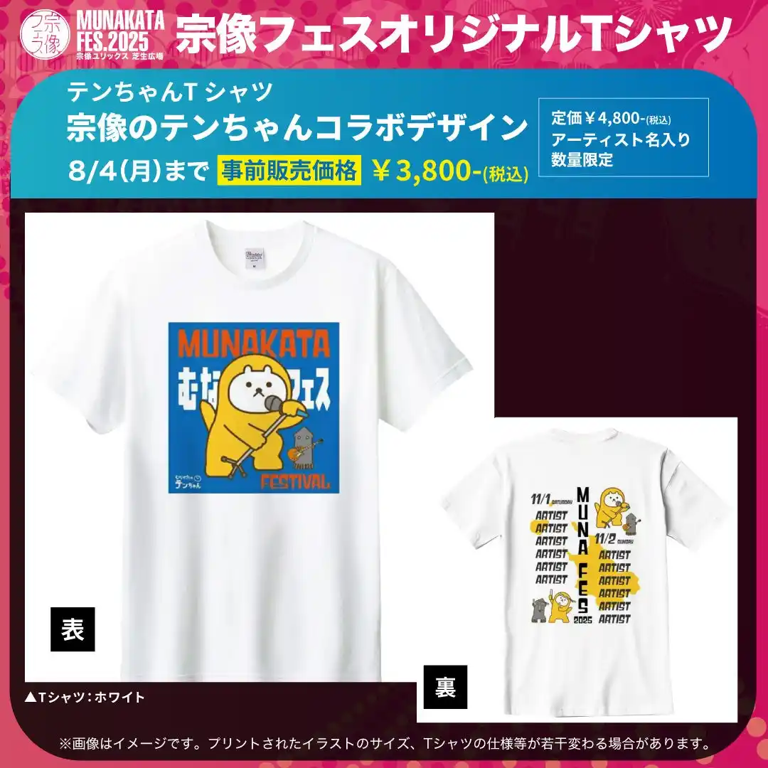 宗像でお馴染みの「宗像のテンちゃん」が宗像フェスとコラボ!宗像フェスだけのオリジナルTシャツ |